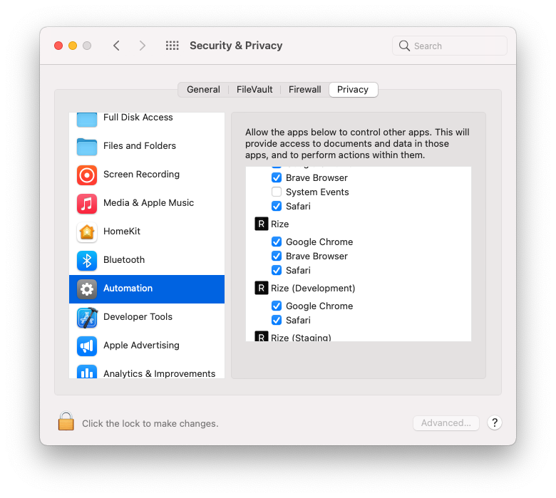 Rize Now Works with Safari/Chrome/Brave/Edge on Mac - In conjunction with the news above, we just launched the ability to categorize your time spent on all browsers on MacOS except Firefox. Unfortunately, Firefox does not support Apple Script.In order, for Rize to categorize your URLs, you’ll need to approve the access control permission when you’re prompted. If you already rejected that permission you can update it in your System Settings > Security & Privacy > Automation. You can read more here.