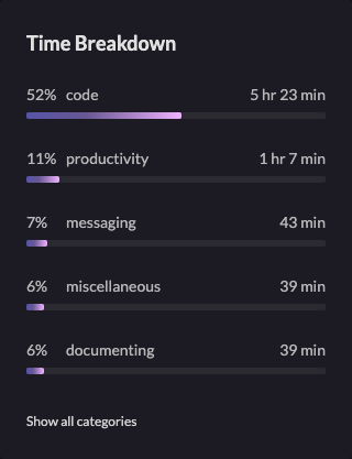 - Improved Website Categorization - We’ve been working on making time categorization easier and more accurate. We finally added fallback domain categorization for subdomains. We’re also testing out some website categorization APIs to see if we can further reduce the number of uncategorized apps and sites.